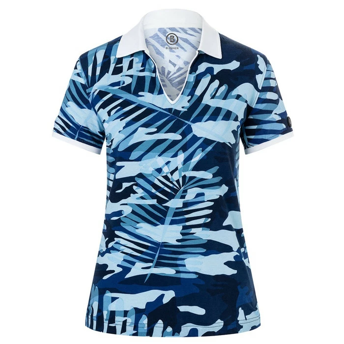 Floral accents put a summery spin on the Lumi polo shirt’s stylish camouflage design. A feminine V neckline and classic polo collar complete the stylistically bold look, while the stretch quality in soft single jersey guarantees optimal comfort.
