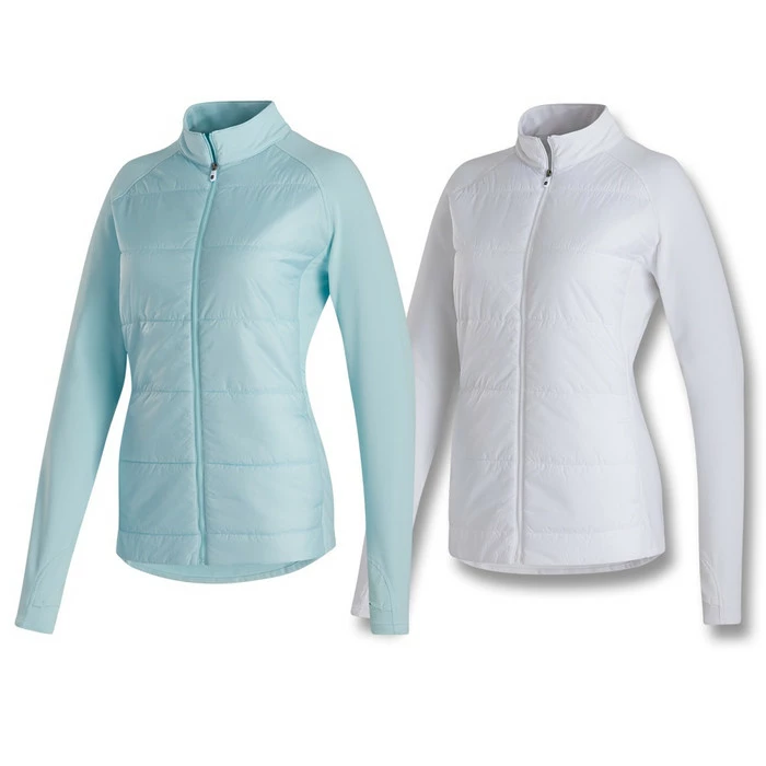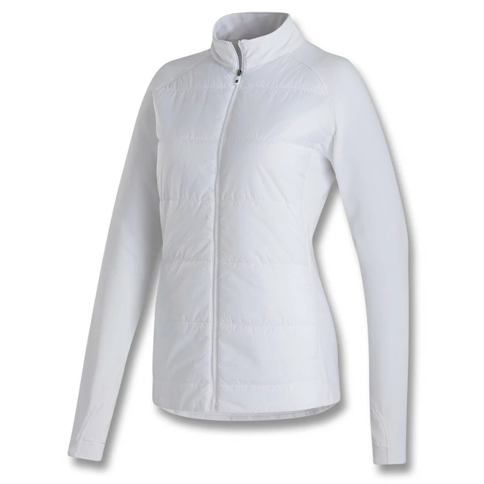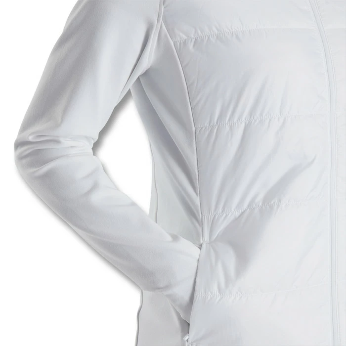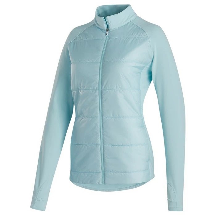 The Women’s Hybrid Jacket combines easy care fabric with thermal retention by utilizing quilted woven panels. Shop golf clothes for women today.