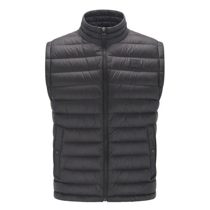 An easy-to-pack-away gilet by BOSS Menswear, designed with a water-repellent finish for dependable protection. Cut to a regular fit, this essential layer is filled with sustainably sourced duck down and feather to provide warmth without weight. Contrast fabric at the inside, along with a BOSS badge at the left chest, adds a fresh look to this gilet.