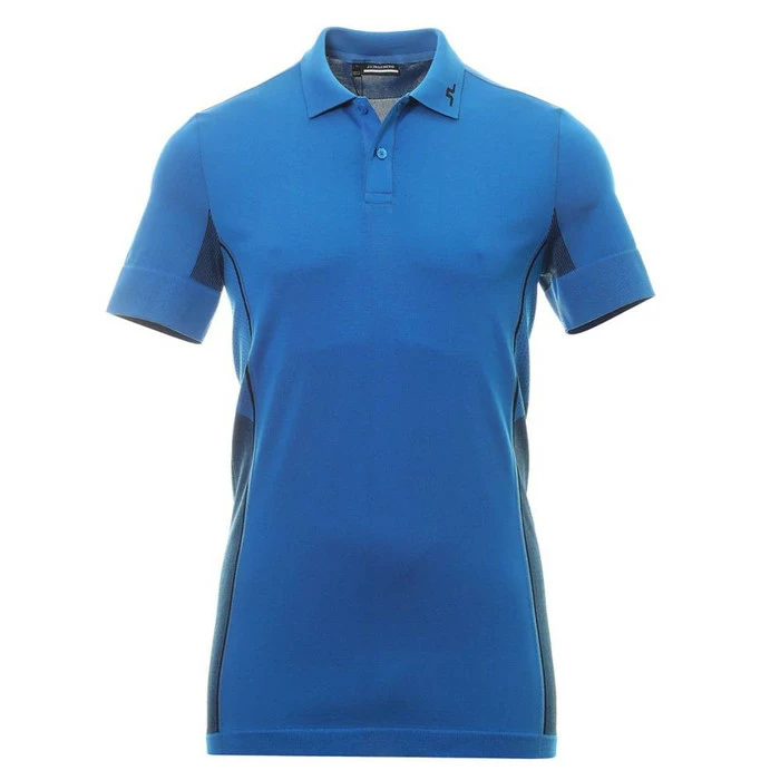 Mens J.Lindeberg Golf Al Polo Shirt. Updated for Spring Summer 2022, a seamless, three button placket, polo shirt constructed from a vented two-tone fabric with stretch for high comfort.