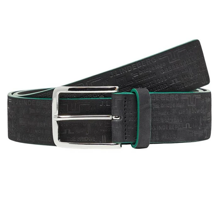 Leather belt with an embossed all-over print artwork and contrast color edge.