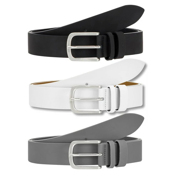 Leather belt with a debossed J.Lindeberg logo on buckle and silver matt buckle finish.