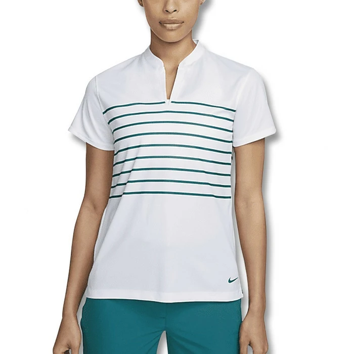 Make your way comfortably across the course in the lightweight, breathable Nike Women’s Dri-FIT Victory Striped Golf Polo.Nike Dri-FIT helps keep y ou dry and comfortable while a V-neck and low-profile blade collar provide a modern twist.